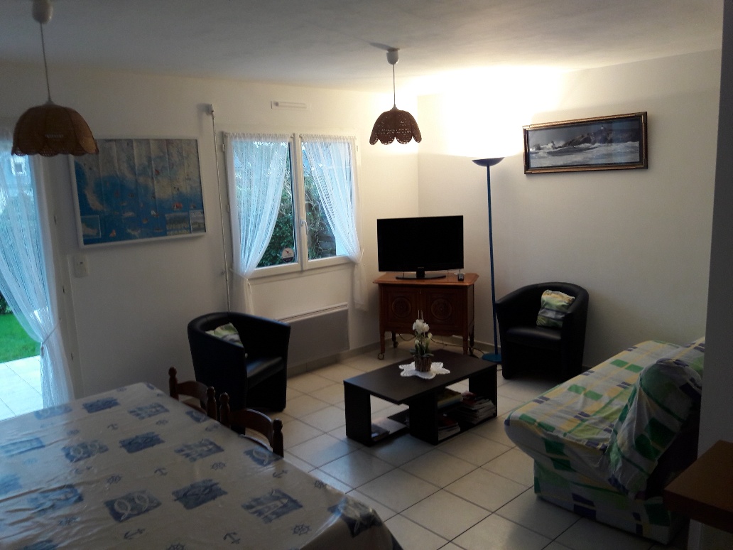Un séjour : Canapé convertible ( clic-clac), 2 fauteuils, table de salon, TV couleur, chaise enfant, radio K7, jeux de société.